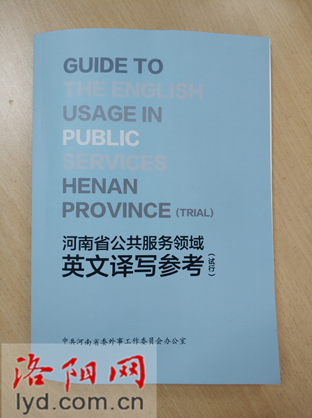 | 核心提示: 隨著城市的“顏值”越來(lái)越高,來(lái)洛陽(yáng)旅游的國(guó)外游客越來(lái)越多。作為熱情好客的東道主,如果想向他們推薦洛陽(yáng)特色的美食、景區(qū)、文化,怎么翻譯才能讓他們聽(tīng)得懂?8日,全省公共服務(wù)領(lǐng)域外語(yǔ)標(biāo)識(shí)規(guī)范建設(shè)工作在洛啟動(dòng)。啟動(dòng)儀式發(fā)布的《河南省公共服務(wù)領(lǐng)域英文譯寫(xiě)參考(試行)》一書(shū)中,對(duì)不少洛陽(yáng)文化符號(hào)進(jìn)行了規(guī)范,不妨看看。 |