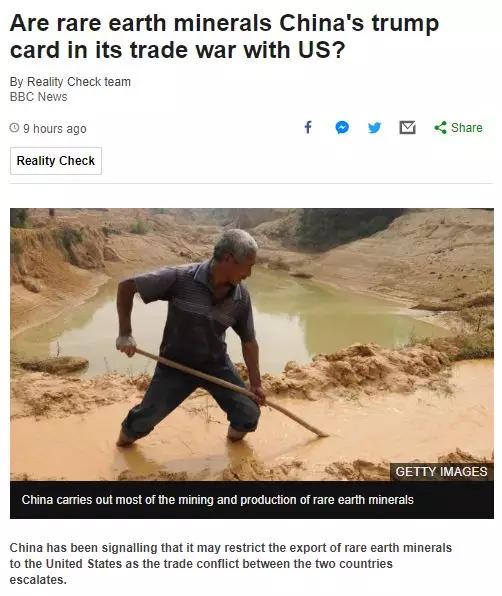 BBC上面這篇文章的標題很有趣,一語雙關:《稀土是中國與美國貿易戰的“王牌”嗎》。(英文中trump原意就是“王牌”)